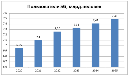 Рис.1. Динамика роста пользователей 5G 2020-2025 гг.