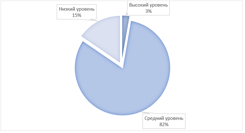 1. Готовность студентов СПО к итоговой аттестации представляет собой неравномерный профиль. У подавляющего большинства обучающихся (80%) готовность находится на среднем уровне, что предполагает наличие скрытых резервов и потенциальных трудностей.