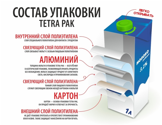 На самом же деле это сложное изделие, которое имеет от шести до девяти слоёв. Тетрапак на 75% состоит из картона, это правда, но на