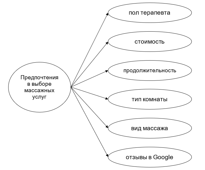 В области операционного проектирования в массажно-оздоровительных услугах всё более распространённым становится комплексный подход. В одной из работ [6] описана модель, совмещающая параметры, связанные как с индивидуальными запросами клиентов (стоимость процедуры, длительность, пол терапевта, характер техники и пр.), так и с их реакцией на цифровые отзывы. Наглядное представление этой идеи находится на следующей иллюстрации.