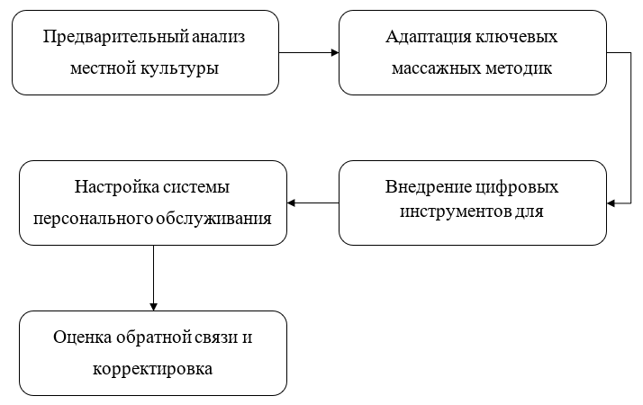 Другая часть аналитических исследований касается общего алгоритма интеграции культурных элементов в международную стратегию массажа. Схематически его можно представить на следующем рисунке (см. Рис. 2).