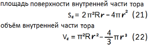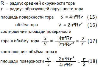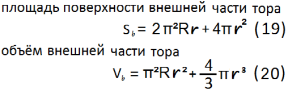 Объёмы и площади криволинейных поверхностей частей тора определяются по теоремам Гульдина [ 1, c. 329 – 332].