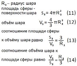 Физические тела имеют геометрическую форму в виде разнообразных фигур. Геометрические параметры – длина, ширина, длина периметра; высота, радиус (у фигур вращения); площадь поверхности; объём. Геометрические фигуры характеризуются соотношениями длины периметра к площади (плоские фигуры) и площади поверхности к объёму (объёмные фигуры). Эти характеристики имеют практическое значение, например длина забора на единицу площади участка и площадь поверхности сосудов данной ёмкости. Существуют стандартные решения практических задач по оптимизации отношения площади поверхности к объёму тела. [1, c. 178-180].